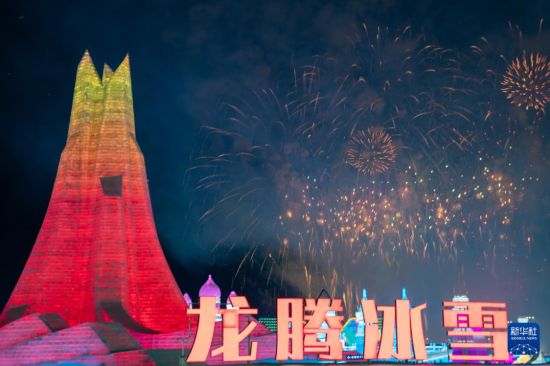 1月5日,冰雪节启幕焰火在哈尔滨冰雪大世界园区上空绽放。当日,第40届中国·哈尔滨国际冰雪节开幕,吸引众多游客。新华社记者 张涛 摄